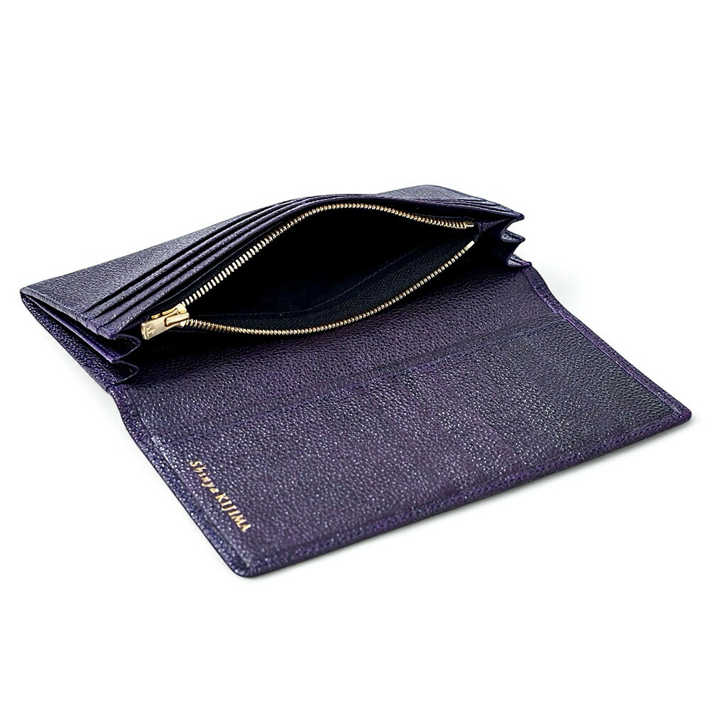 【ふるさと納税】【黒桟革】長財布 1点 紫 パープル 横幅187×高さ88×厚さ20mm 約120g 牛革 レザー 札入れ カードポケット フリーポケット ファスナー付き小銭入れ 長財布 財布 ウォレット 東京都 北区 送料無料