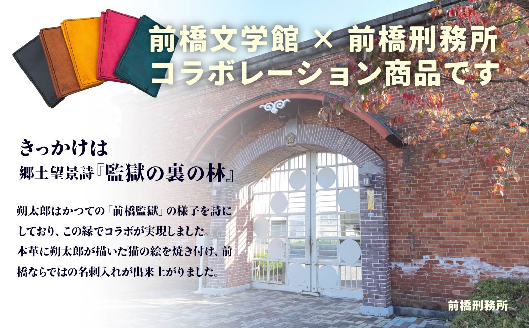 - 【ふるさと納税】萩原朔太郎の描いた猫の刻印入り名刺入れ 選べるカラー | 名刺ケース 本革 雑貨 ビジネス 名刺入れ コンパクト カードケース 黒 茶 黄 青緑 ピンク カード入れ 萩原朔太郎 青猫 猫 月に吠える 詩 近代詩 文学 ギフト 文学作品 読書 文豪グッズ 群馬県 前橋市