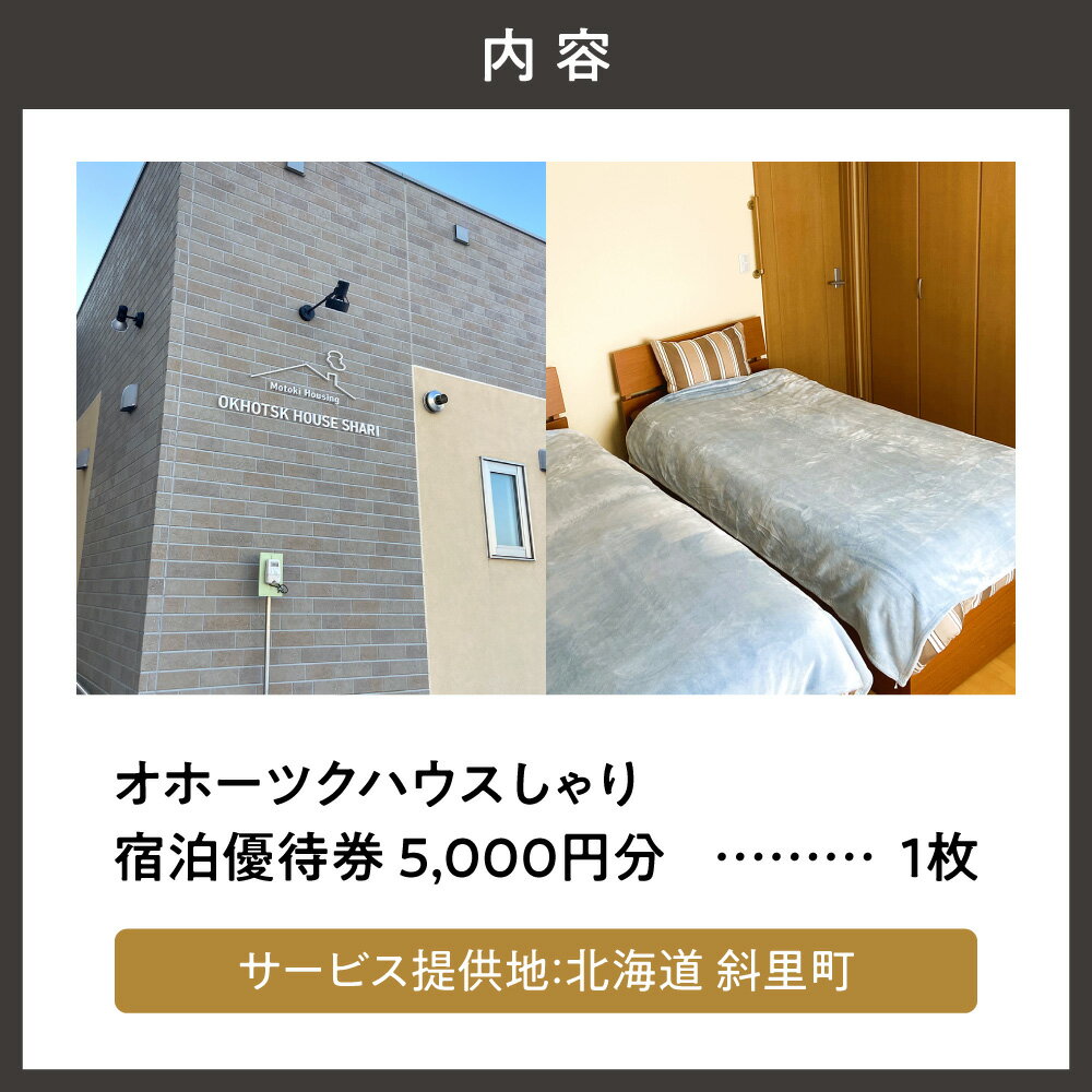 【ふるさと納税】一軒家(平屋)まるごと貸切【オホーツクハウスしゃり 】宿泊優待券(5千円分)【配送不可地域:離島・沖縄県】