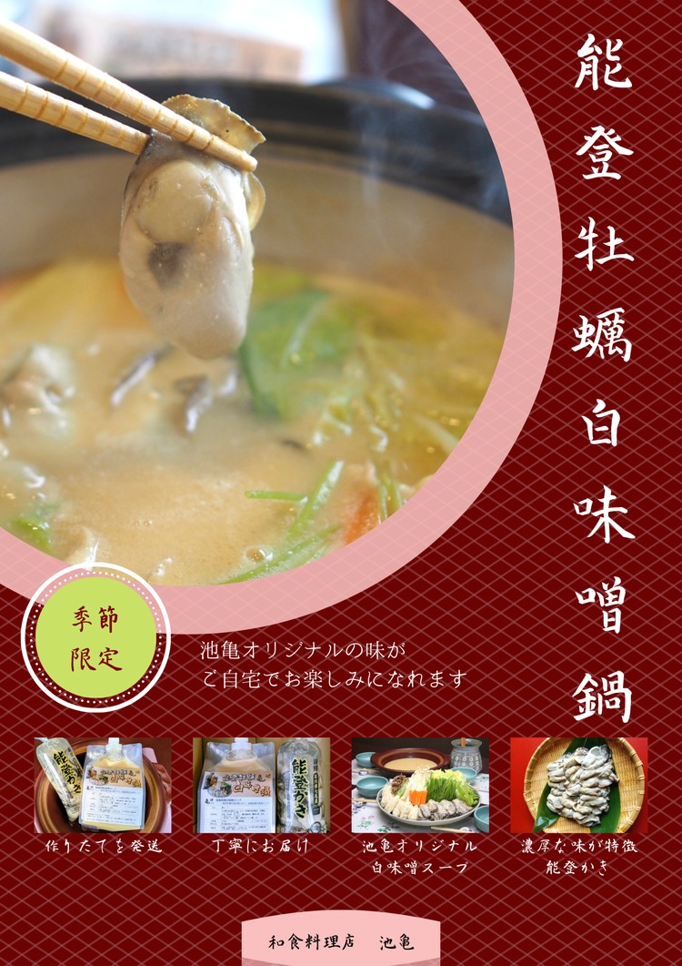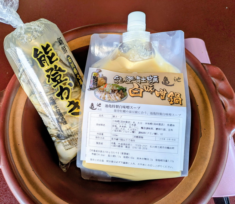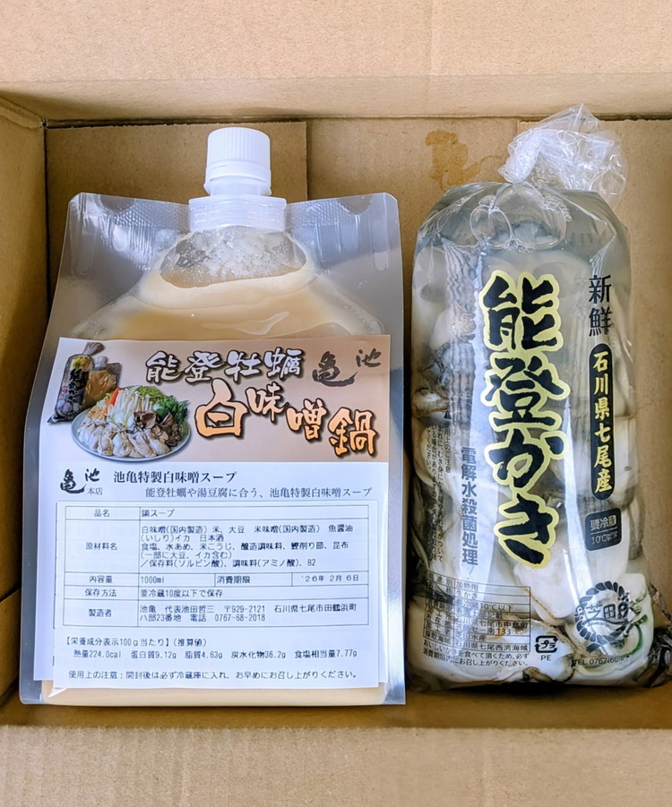 - 能登牡蠣白味噌鍋【3-4人前】/能登かき500g・白味噌スープ1L | 牡蠣 かき オイスター 鍋 なべ 海産物 海鮮 魚介 魚貝 セット味噌 国産 石川県 七尾市 能登 ※北海道・沖縄・離島への配送不可 ※2026年1月中旬~4月下旬頃に順次発送予定
