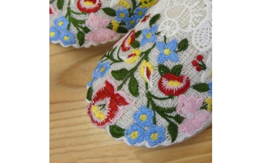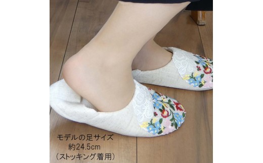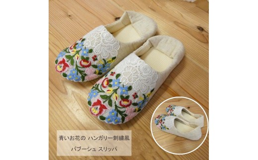 - 足元が可愛くなるレースバブーシュスリッパ(青)《 スリッパ レース ルームシューズ ルームスリッパ 洗濯できる オールシーズン ハンガリー風レース 》【2501N13801_02】