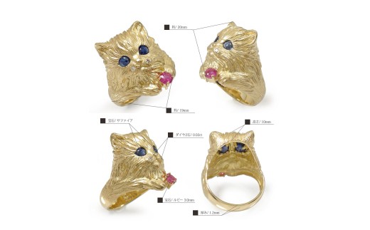【サイズ:15号】< 甲府ジュエリー >K18YG 猫リング サファイア ルビー ダイヤモンド 170220os01