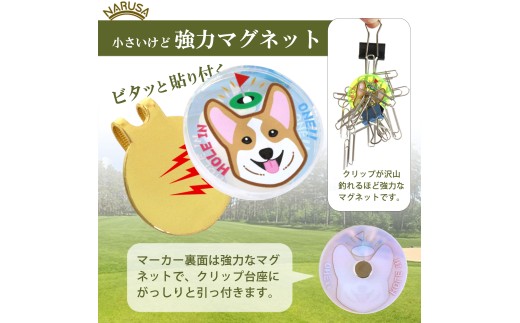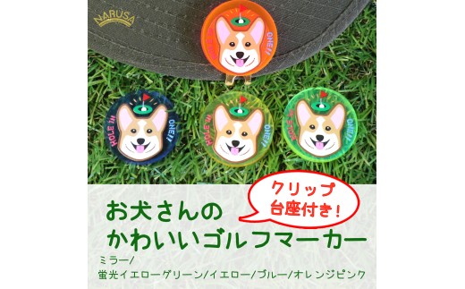 【母の日お届け】【イエローグリーン】NARUSA コーギー ゴルフマーカー マグネット・クリップ付 ≪選べるカラー≫ ブルー イエロー イエローグリーン ミラー 蛍光アクリル 見つけやすい ゴルフボールマーカー 見失わないマーカー ゴルフ ゴルフ用品 ゴルフコンペ ゴルフマーカー 愛知県 豊橋市 母の日 贈答 プレゼント