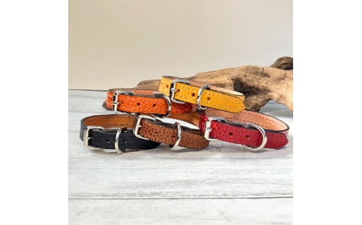 - 選べるサイズの 本革 犬 ・ 猫用 首輪 ( 15㎜幅 ) 小型 / 中型 / 大型 【ドラーロ】 Sサイズ 赤色