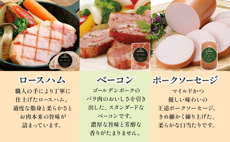 [№5712-0732]ロースハムのバラエティーギフト セット 贈り物 こだわり 豚肉 ゴールデンポーク 加工品 簡単調理 おつまみ おかず お弁当 朝食 定番 サイボク 埼玉県 日高市