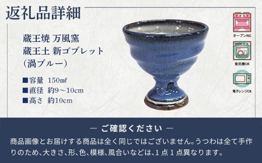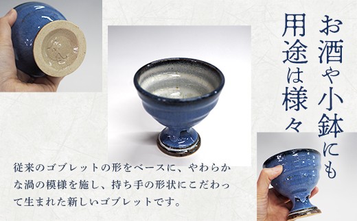 蔵王焼万風窯 蔵王土 新ゴブレット(150ml) / 渦ブルー 【04301-1022】