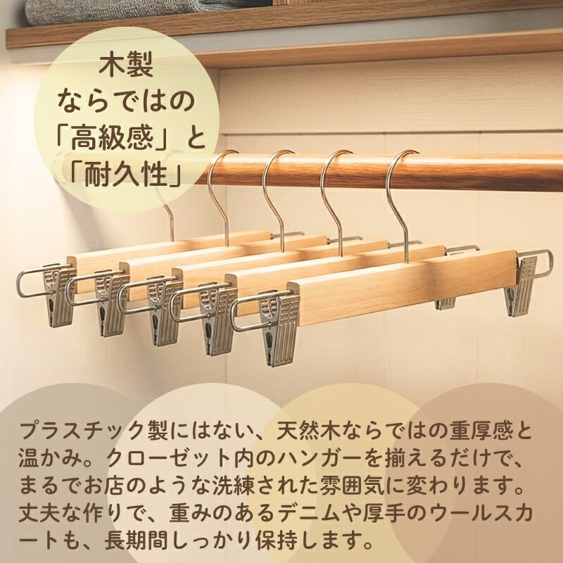 - 【ふるさと納税】木製ハンガー 10本組 ボトムス用 スカート ズボン用 | ハンガー クリップハンガー ズボンハンガー ボトムハンガー クリップ付 天然木 収納 衣類ハンガー スラックス パンツ 型崩れ防止 クラフトワン