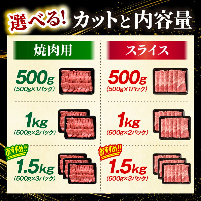 - 【ふるさと納税】【選べる種類・内容量】宮崎牛赤身(ウデorモモ) 焼肉 スライス 500g~1.5kg