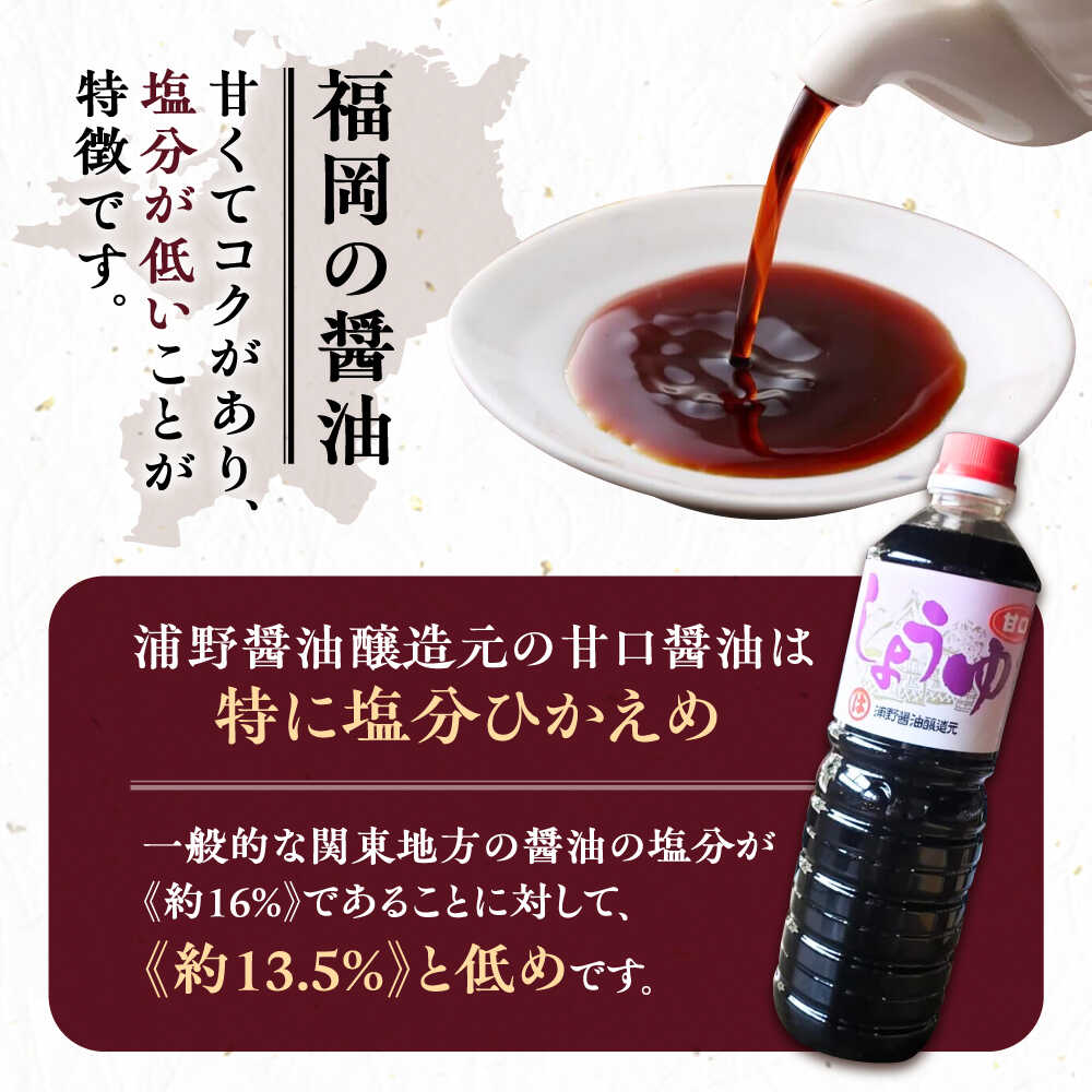 - 【ふるさと納税】甘口醤油 1L×3本《豊前市》【浦野醤油醸造元】[VAV021] 調味料 醤油 しょうゆ 調味料 九州 国産 8000円 1万円以下