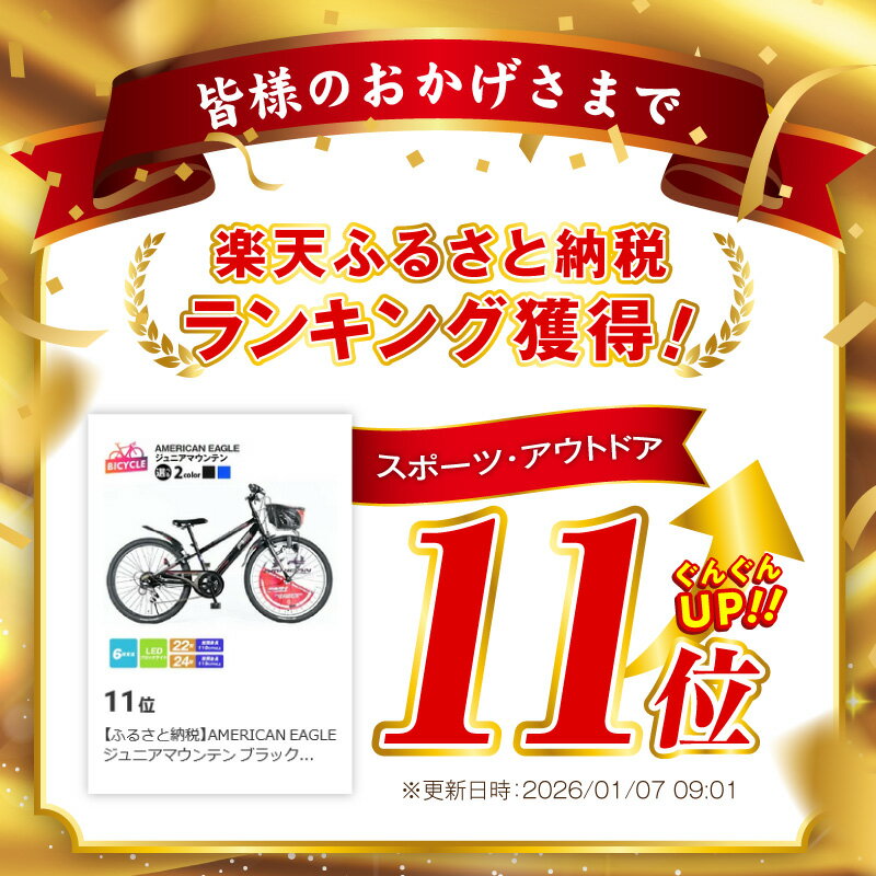 - 【ふるさと納税】ジュニアマウンテン AMERICAN EAGLE ブラック / ブルー 22型 / 24型 完成品 完全組み立て キッズ ジュニア 子供用 自転車 サイクル 外装6段変速 LEDブロックライト リング錠 バンドブレーキ ランキング急上昇中 大阪府 泉佐野市 送料無料