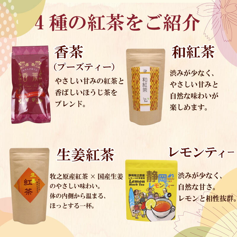 - 【ふるさと納税】 紅茶4種類 飲み比べ ティーバッグ 4袋 ティーパック お手軽茶 お茶 おちゃ 贈答 ギフト プレゼント ティータイム お土産 リラックス ティー 家庭用 自宅用 贈答用 国産紅茶 静岡茶 相良物産株式会社 静岡県 牧之原市