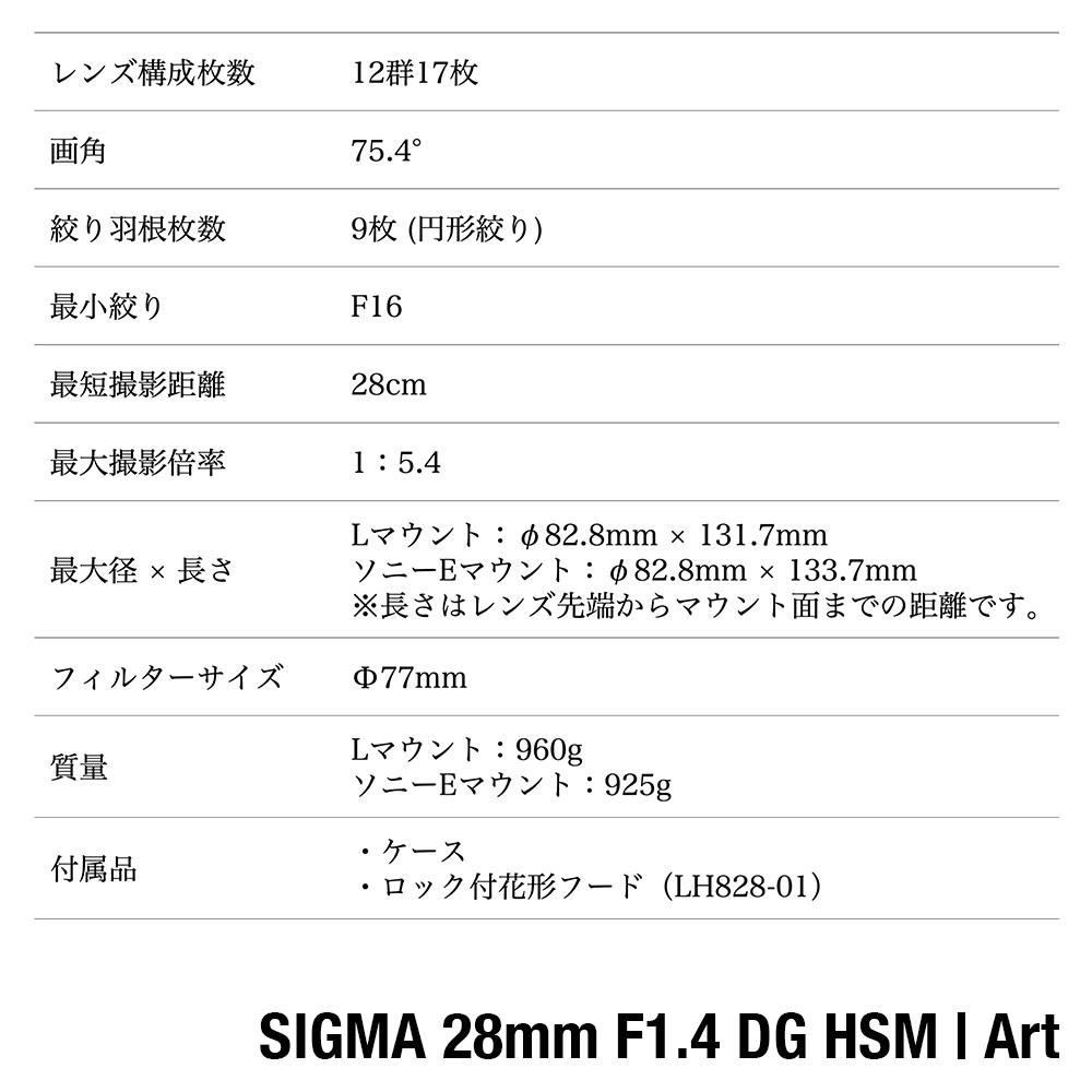 - SIGMA 28mm F1.4 DG HSM | Art(数量限定)【Lマウント用】