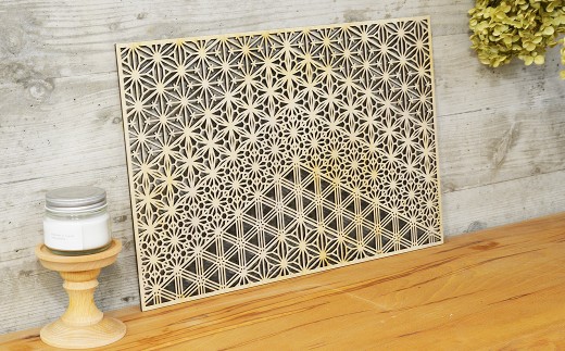 - 組子文様の木製ウォールアートパネル 四角タイプ 山-yama- Lサイズ_T2600224