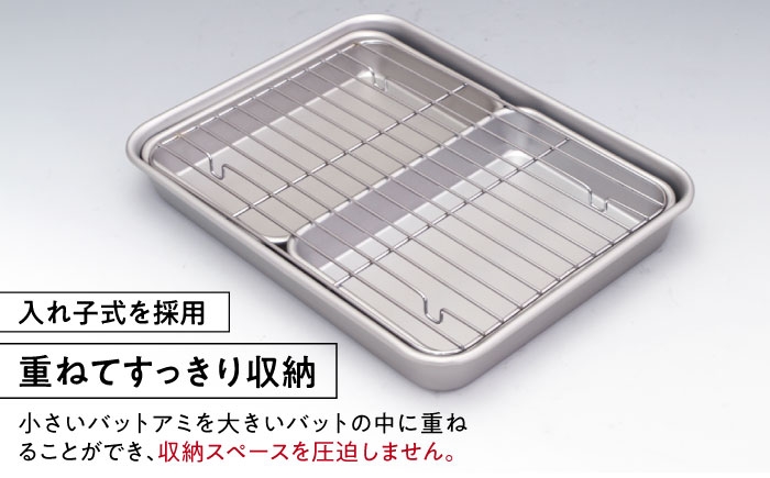 - バット アルミ天ぷらバット 5点セット(バット4枚アミ1枚) / バット バッド アミ あみ 網 天ぷら 揚げ物 アルミ 日本製 急速冷凍 調理器具 アルミバット ザル 油切り 網付き セット 衣付け 小麦粉 卵 パン粉 下ごしらえ / 大阪府藤井寺市/谷口金属工業株式会社 [BLAC017]