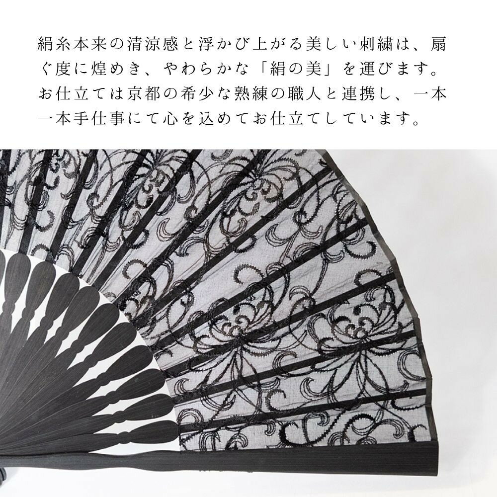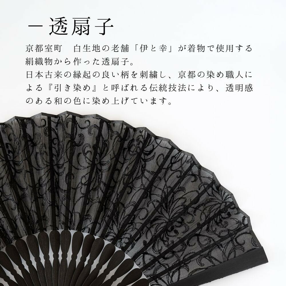 - 【ふるさと納税】【伊と幸】《白生地の老舗が贈る》染め透扇子 糸菊尽くし柄 黒色|京都 人気シリーズ 扇子[ 扇子袋付き 引き染め 透明感のある色 職人技 おすすめ せんす ギフト プレゼント お取り寄せ 通販 送料無料 ふるさと納税 ]