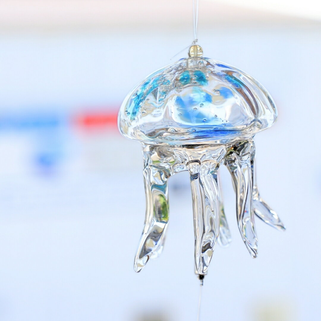 - 【ふるさと納税】風鈴 クラゲ ガラス くらげ風鈴 クリアブルー 手作り ガラス細工 | 吊り下げ おしゃれ インテリア くらげ ふうりん ハンドメイド 夏 贈り物 飾り 涼しい 綺麗 ガラス製品 青 ギフト プレゼント 和の音色 夏の音色 新潟県 弥彦村 タクグラス