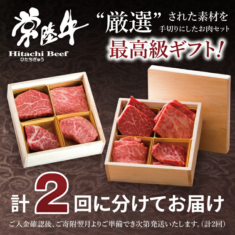 - 【ふるさと納税】2ヶ月 定期便 肉 常陸牛 肉匠の手切り4種 ステーキ 焼肉 食べ比べセット 黒毛和牛 国産牛 高級 内祝い 出産 結婚 ギフト対応 茨城県 水戸市 肉のイイジマ(DU-9)