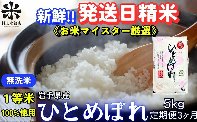 【ふるさと納税】 ひとめぼれ 無洗米 令和7年産 盛岡市産 5kg 定期便 3ヵ月 新鮮 発送日精米 1等米のみを使用したお米マイスター監修の米 お米 白米 精米 ご飯 ブランド米 産地直送 岩手県 盛岡市 東北 岩手 盛岡 有限会社村上米穀店