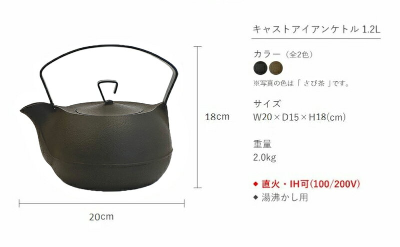 【ふるさと納税】 キャストアイアンケトル 1.2L さび茶 南部鉄器 鉄瓶 直火 IH対応 壱鋳堂 日本製 やかん ケトル 伝統工芸品 工芸品 キッチン用品 調理器具 日用品 岩手県 盛岡市 東北 岩手 盛岡 株式会社壱鋳堂