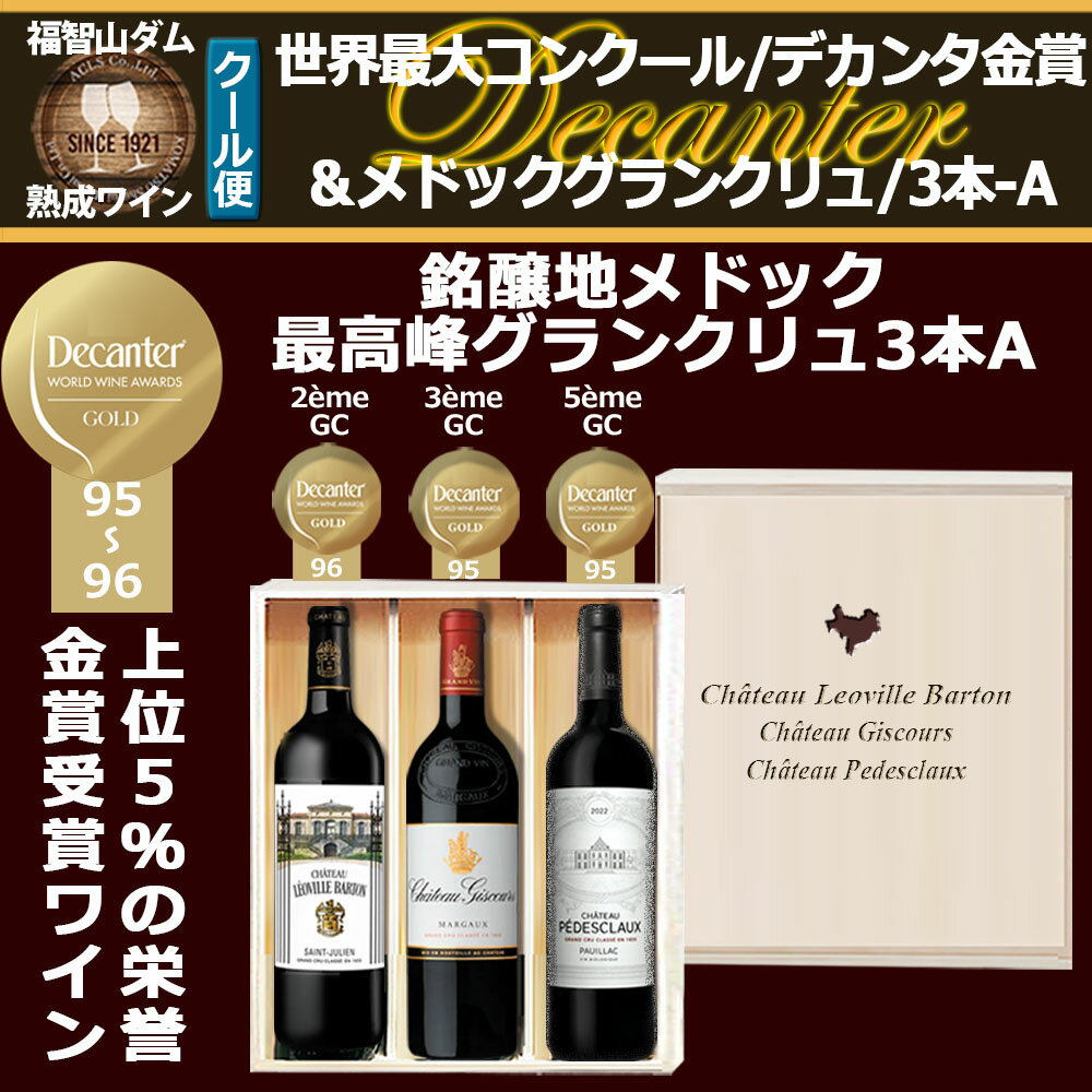 【ふるさと納税】FD617 福智山ダム熟成 デカンタ金賞&メドックGC 3本 詰め合わせAセット 3種セット 各1本 750ml シャトー・レオヴィル・バルトン シャトー・ジスクール シャトー・ペデスクロー ワイン お酒 酒 アルコール 飲料 冷蔵 福岡県 直方市 送料無料