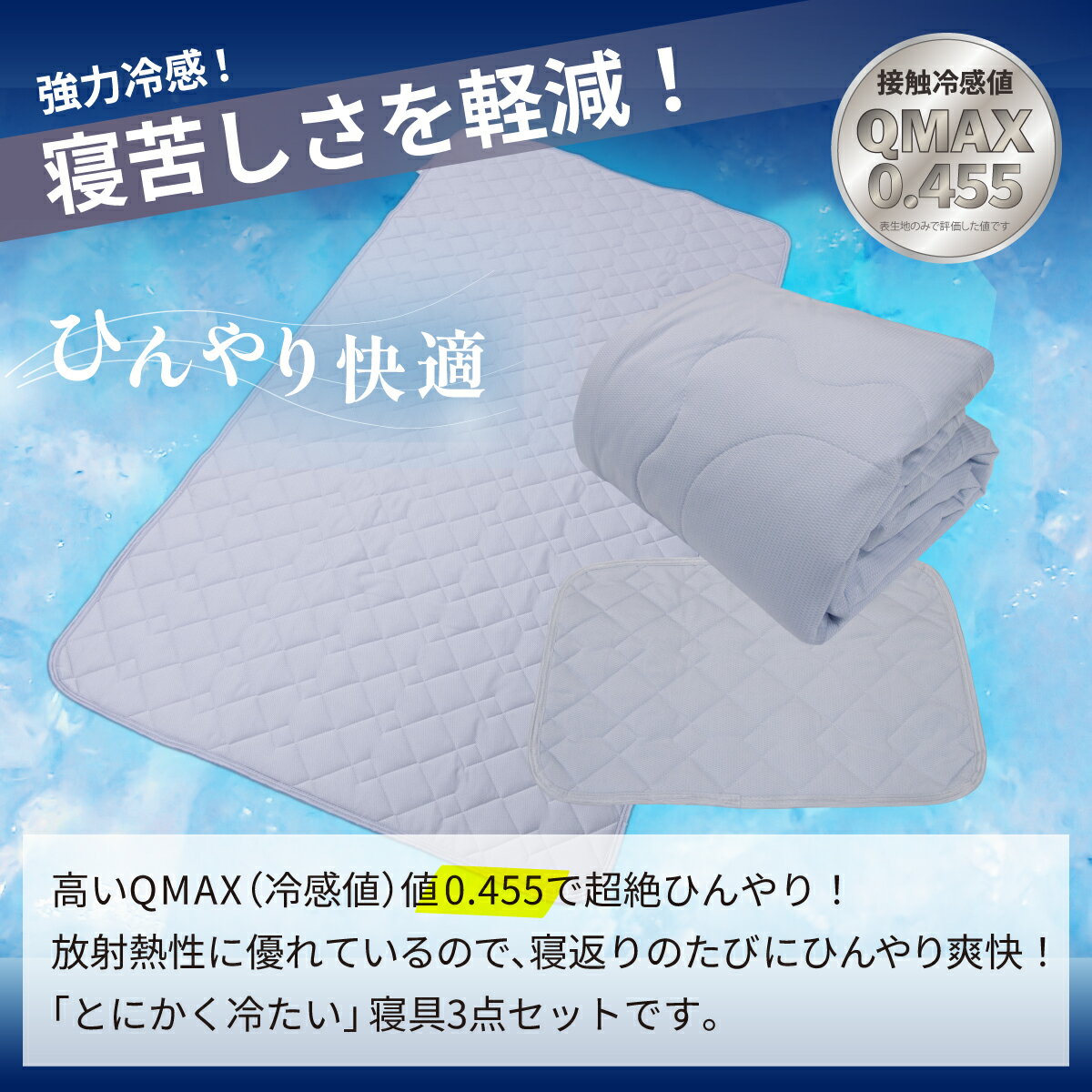 - 【ふるさと納税】\選べるカラー/強冷感 ひんやり 3点セット シングル 敷パッド 枕パッド ケット 夏用 接触冷感 Q-MAX 0.455 【氷結ポラリスコールド】 | 抗菌防臭 吸放湿 部屋干し臭対策
