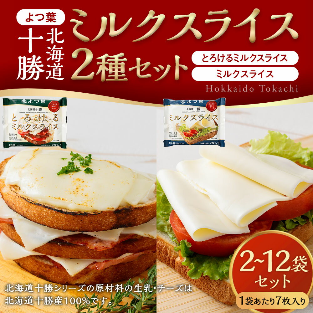 【ふるさと納税】<選べる内容量>「よつ葉」北海道十勝 ミルクスライス2種 とろけるミルクスライス・ミルクスライス 計2袋(各1袋セット) / 計4袋(各2袋セット) / 計8袋(各4袋セット) / 計12袋(各6袋セット) スライスチーズ チーズ 生乳 ブレンド 料理 冷蔵 送料無料