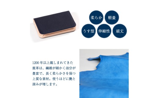 - 名刺入れ 藍染 国産 鹿革 水色 手作り カード ポケット マチあり 藍染め 阿波藍 間伐材の布 カードケース 軽量 おしゃれ ファッション 小物 アクセサリー ビジネス ギフト プレゼント 祖谷 みよし 徳島県 三好市 DIYA