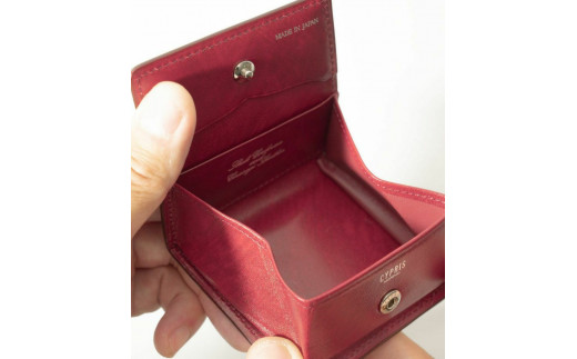 - キプリス本革製コードバンxシラサギレザーボックス小銭入れ カラー:ブラックxレッド