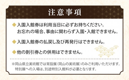 - 岡山後楽園・岡山県立美術館・岡山県立博物館ペア入園入館券【後楽園 観光 美術館 博物館 入場券 ペア入場券 ペア入館券 おすすめ 人気 入館券】