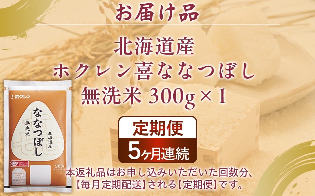 - 【令和7年産】【5ヶ月定期配送】(無洗米300g)ホクレン喜ななつぼし