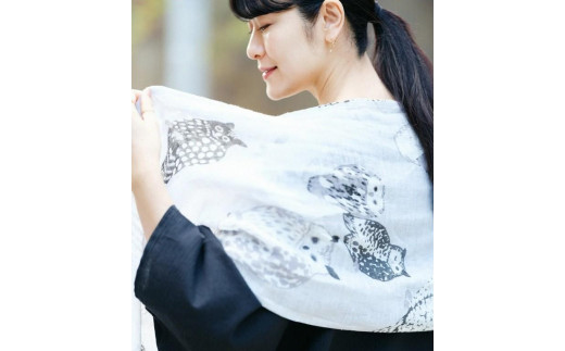 【SOU・SOU】綿麻 環(かん)くびまき/ふくろう|京都 SOUSOU スカーフ 人気ブランド[ テキスタイルデザイン 京都 ブランド ソウソウ おしゃれ 雑貨 首元 人気 おすすめ シンプル 柄 旅行 おでかけ プレゼント ギフト お取り寄せ 通販 送料無料 ふるさと納税 ]