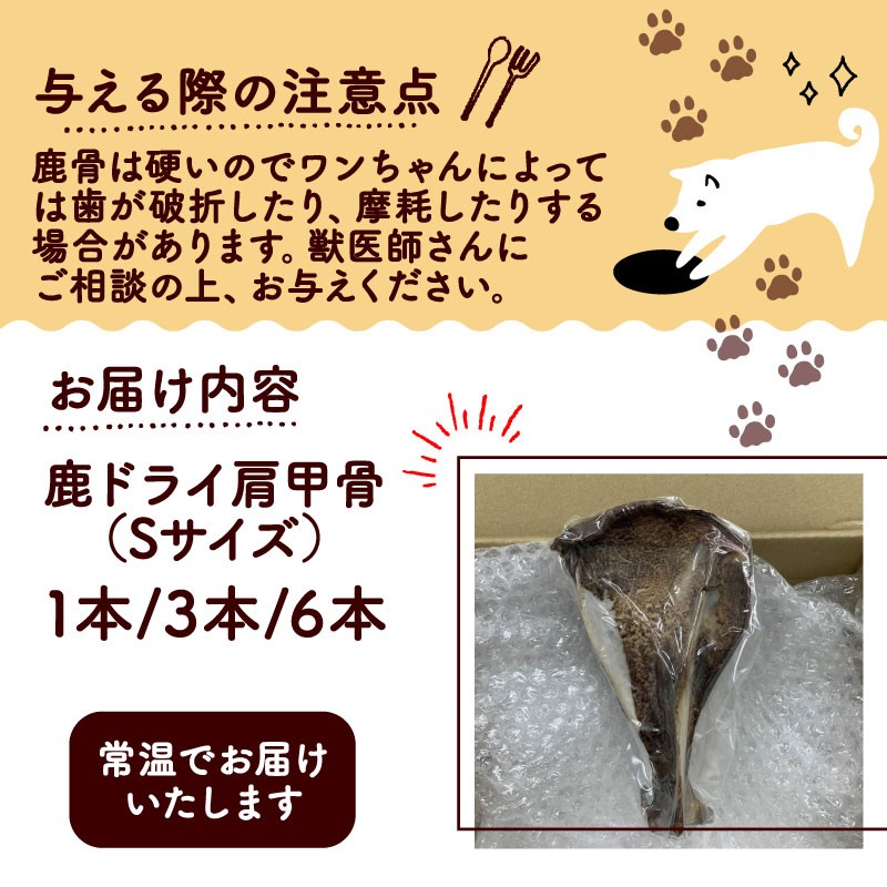 鹿ドライ肩甲骨Sサイズ(17〜19㎝) 選べる 本数 6本 3本 1本 ペット用品 ペットグッズ ペットフード ドッグフード 無添加 肩甲骨 ボーン 歯 健康 国産 ストレス解消 ジビエ 鹿 鹿肉 わんちゃん ペット用品 犬用 ご褒美 おやつ 超小型犬 大型犬 中型犬 犬 イヌ いぬ 京都府 京丹波町