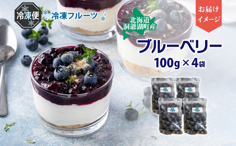 北海道産 ブルーベリー 100g×4袋 果物 果実 くだもの 冷凍食品 おやつ デザート ジュース ヨーグルト ジャム スイーツ 簡単 便利 一人暮らし 小分け 製菓 送料無料 冷凍 北海道 洞爺湖町