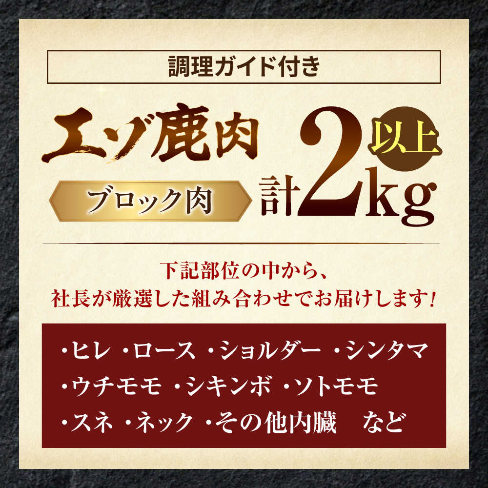 【ふるさと納税】社長のおまかせ 鹿肉ブロック セット 2kg 以上 | 鹿肉 しか肉 ブロック ジビエ 北海道 | 株式会社Mt.[BOAX007]