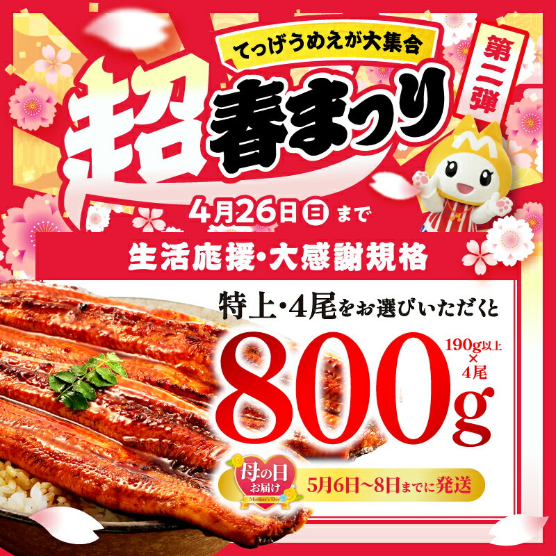 【数量限定】国産うなぎ蒲焼4尾 計800g以上 鰻蒲焼ウナギ蒲焼用たれさんしょうのセット