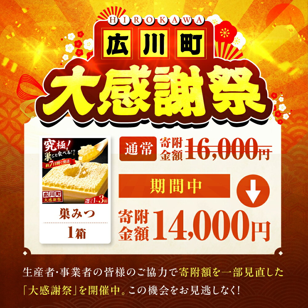 - 【ふるさと納税】【大感謝祭:寄附額見直し】【選べる容量】はちみつ 国産 巣みつ 300g-900g 蜂蜜 ハチミツ スピード発送 贈答 ギフト 広川町 / 株式会社九州蜂の子本舗[AFAI004]