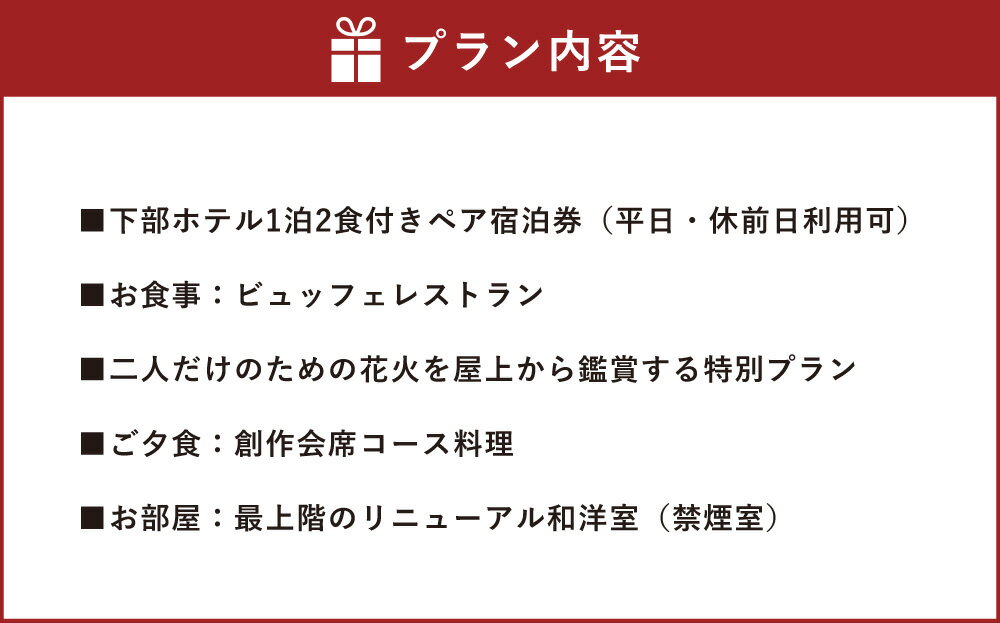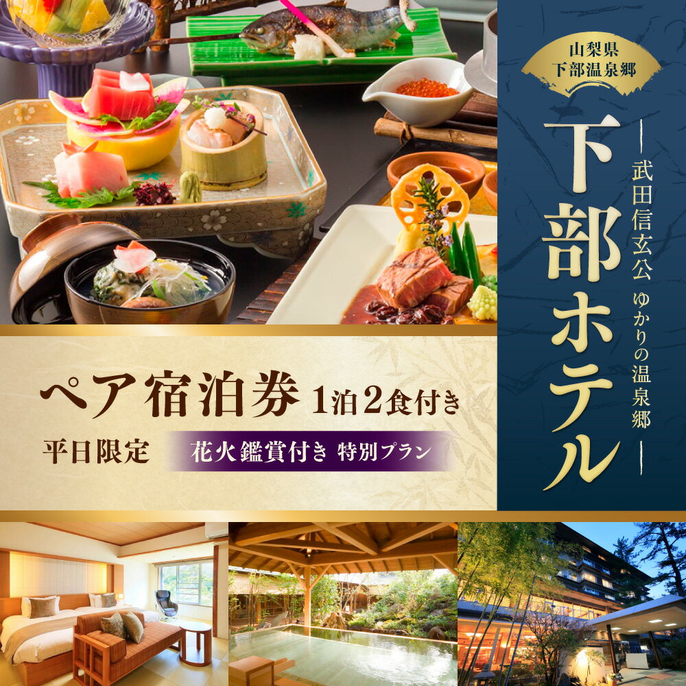 - 【ふるさと納税】宿泊券 花火鑑賞付き 下部ホテル ペア 宿泊 株式会社下部ホテル 温泉 旅館 温泉旅館 ギフト券 金券 レストラン 食事 食事券 観光 ビュッフェ バイキング 山梨県 身延町 送料無料