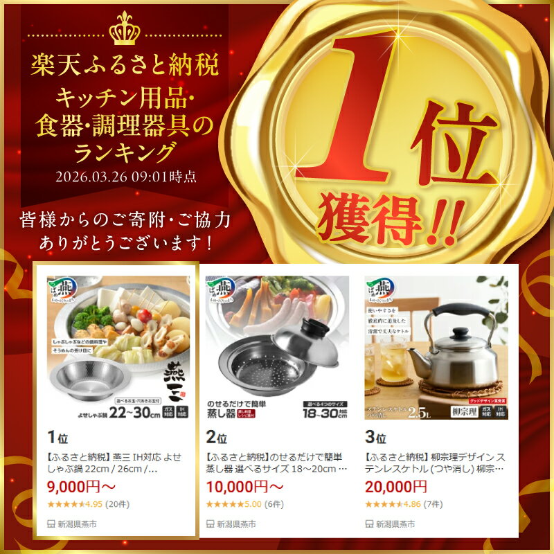 - 【ふるさと納税】 燕三 IH対応 よせしゃぶ鍋 お玉セット 選べる サイズ【 22cm / 26cm / 30cm 鍋 しゃぶしゃぶ IH ガス 食洗機 対応 洗いやすい 一体成形 ステンレス 調理器具 キッチンツール キッチン用品 10000円 10000 和平フレイズ 新潟県 燕市 燕三条 】