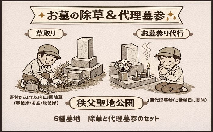 - 【ふるさと納税】 【6種墓地限定】墓地の除草と代理墓参セット(秩父聖地公園内の区画墓地) / お墓 草取り 清掃 献花 お線香 お供え 埼玉県 No.491