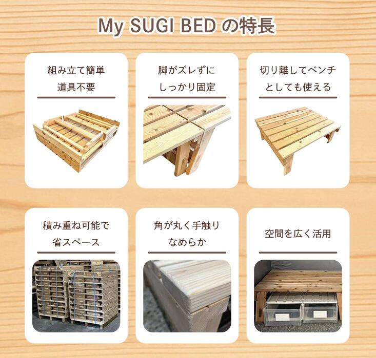- 【ふるさと納税】 災害用 ベッド MY SUGI BED 無垢 木製 避難 災害 非常用 木材 防災 防災用品 インテリア サイズ 長さ200cm × 高さ38cm × 幅85cm おしゃれ 家具 寝具 寝室 収納 徳島県 三好市 みよし 三好西部森林組合