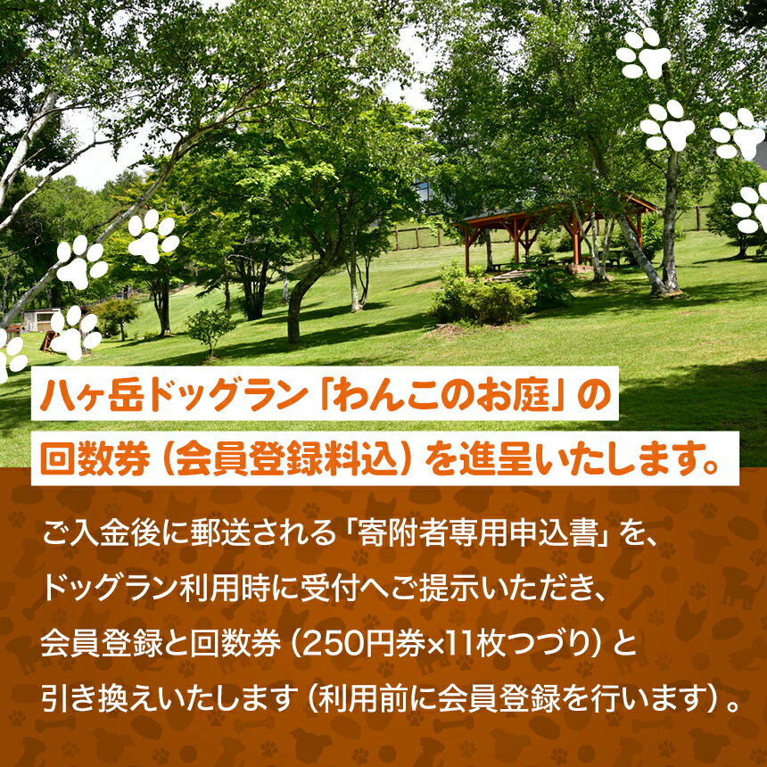 - 【ふるさと納税】 ドッグラン 利用券 【ビジター限定】 八ヶ岳 ドッグラン 「 わんこのお庭 」 会員登録 + 回数券 11枚 | 犬 わんちゃん 旅行 自然 広い 信州 八ヶ岳 長野県 諏訪郡 原村