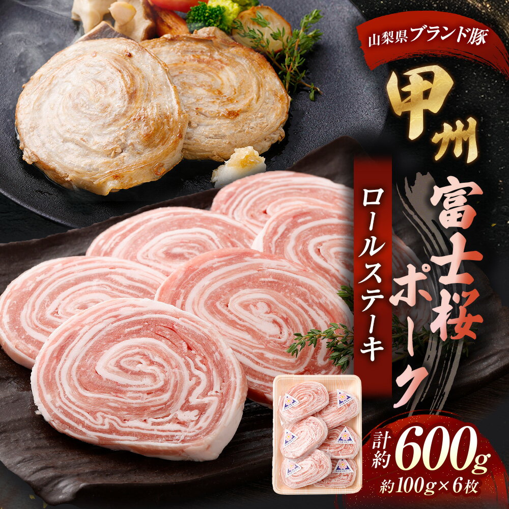 【ふるさと納税】甲州富士桜ポークロールステーキ 計約600g(約100g×6枚) 甲州富士桜ポーク 豚肉 お肉 ステーキ ロールステーキ 冷凍 山梨県産 国産 山梨県 中央市 送料無料