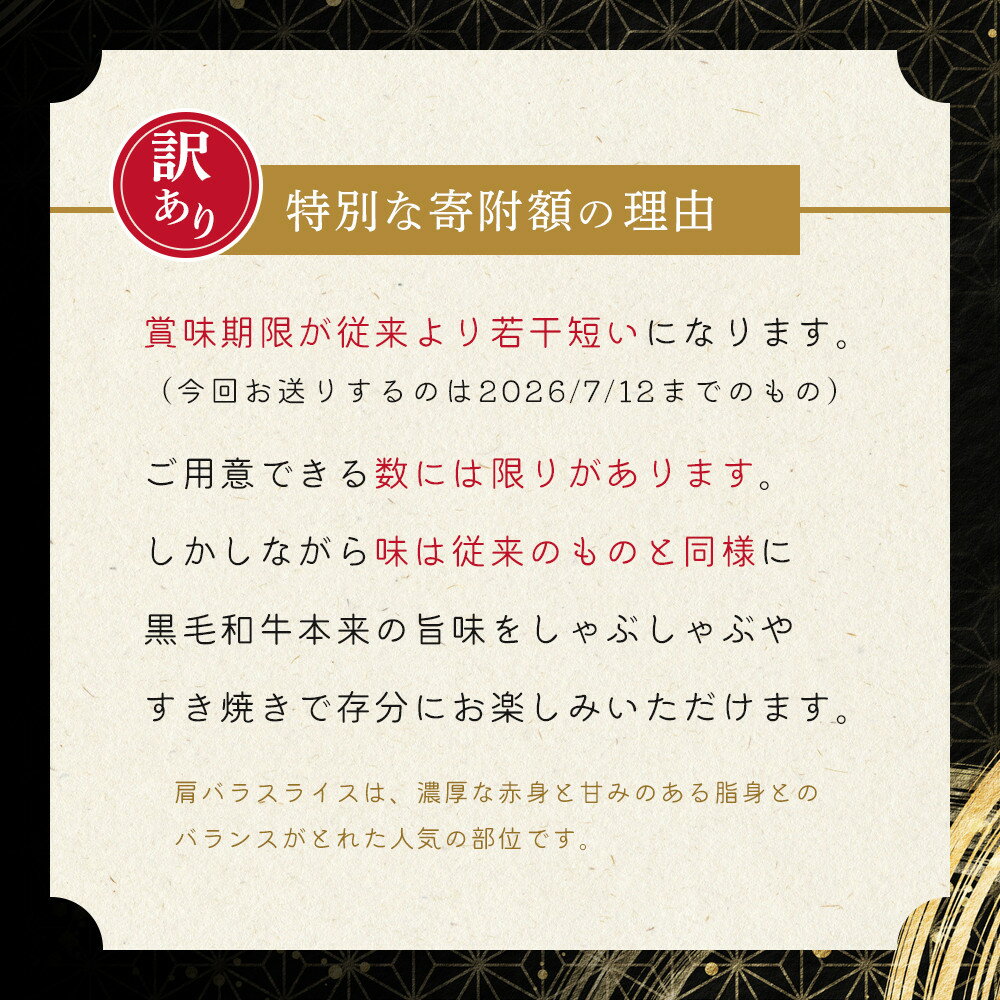- 【ふるさと納税】訳あり※数量限定 容量を選べる 牛肉 肩バラ スライス 300g ~ 1.2kg 馬場牛 黒毛和牛 しゃぶしゃぶ すき焼き | 肉 お肉 和牛 にく 牛 すき焼 すきやき 人気 おすすめ お鍋 お取り寄せ 宮城