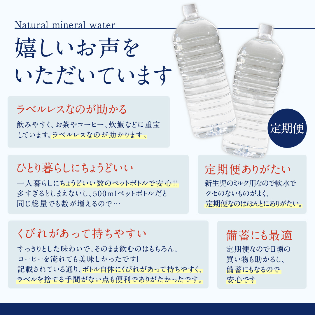 【 3か月 定期便 】 嬬恋 の 天然水 ラベルレス ボトル 2L × 10本 入 × 3箱 × 3回 水 ミネラルウォーター 2000ml 90本 3回定期便 飲料水 通販 定期 備蓄 ローリングストック 備蓄用 ペットボトル 防災 工場直送 箱買い まとめ買い 国産 防災 嬬恋銘水 日用品 [BA019tu]