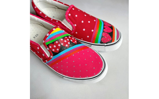 手描きスニーカー「ガールR」 スリッポン ワイズ 2E 25.5cm 【受注制作】