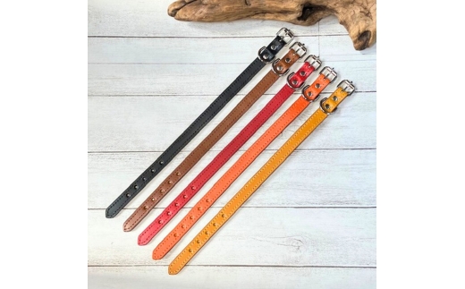- 選べるサイズの 本革 犬 ・ 猫用 首輪 (15㎜幅) 小型 / 中型 / 大型 【イタリア革ブッテーロ】 ブッテーロ Sサイズ 橙色