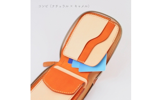 - 【キャメル×チョコ】丸いお財布 本革 ハンドメイド 財布