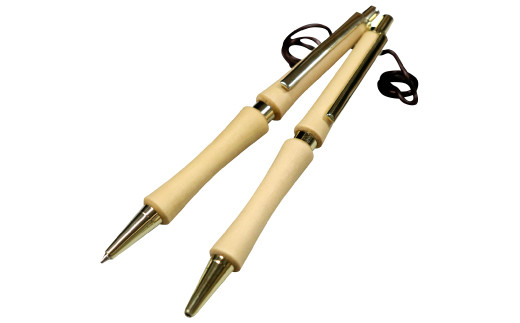 - D-1225 ハンドメイドシャープペンシル&ボールペン(ノック式)イチョウ 2本セット [金属部分:ゴールド]