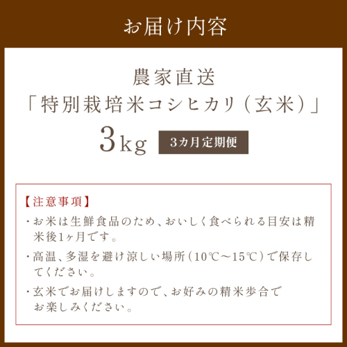 【3ヶ月定期便】2026年産 京都・京丹後峰山 特別栽培米コシヒカリ 3kg 【玄米】 1等米 検査済証付 ふるさと納税 米 玄米 定期便 京都 コシヒカリ 特別栽培 ふるさと納税 玄米 定期便