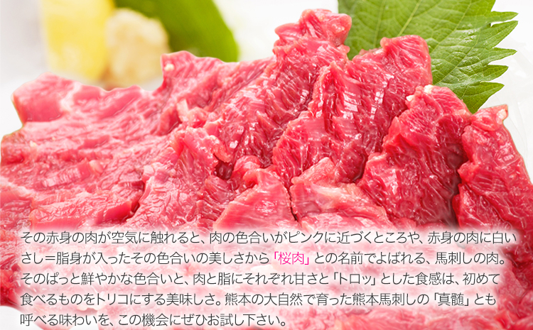 - 馬刺し 上赤身 ブロック 国産 熊本肥育 冷凍 生食用 たれ付き(100g×2)+たてがみセット(50g×1) 《90日以内に出荷予定(土日祝除く)》 肉 期間限定 絶品 牛肉よりヘルシー 馬肉 予約 平成27年28年 農林水産大臣賞受賞 熊本県長洲町